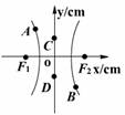 5.如图所示,在双曲线x2/16-y2/9=1的两个焦点F1和F2上放置两个频率相同的相干波源,它们激起的波的波长为4cm。图中A、B、C、D四个质点的振动情况,下列说法中正确的是
