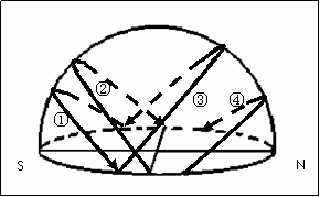 15.下图中能正确表示米尔迪拉市六月份太阳升落视运动路径的是