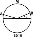 (3)在昼夜平分的纬线上属东半球范围的那一段中,且为昼半球的部分所跨经度为