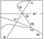 (9分)读某区域图,AB为晨昏线,甲地位于南半球, 此时甲地刚好看到日落,流经甲地的河流注入某大洋。