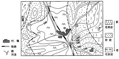 (4)为解决甲镇的用水问题,拟在图中A、B两处选一处建水库,建在何处比较合理?说明理由。