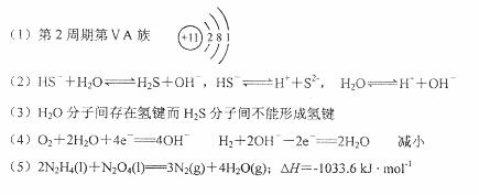 (5)化合物B2A4和B2C4的液体曾被用作火箭推进剂,燃烧反应的生成物是一种气态单质和一种化合物,它们对环境无污染。1 mol B2A4与B2C4完全反应生成两种气体时放出热量516.8 kJ,则该反应的热化学方程式为