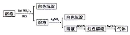 7.某同学为监察溶液中是否含有常见的四种无机离子,进行了下图所示的实验操作。其中检验过程中产生的气体能使红色石蕊试纸变蓝。由该实验能得到的正确结论是( )