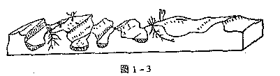 有一些干涸湖底,常因干缩龟裂,定向风沿裂隙处进行侵蚀,使之日益增大,使原来平坦的地面形成许多不规则的浅槽和槽间垄脊,这种地貌称雅丹地貌。读“雅丹地貌示意图”,做31-32题。