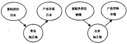 我国东部沿海地区两家境外投资工厂的原料地、加工地和产品市场示意图。读图回答36-37题。