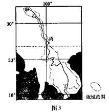 38.图中河流的乙-丙河段流域范围非常狭窄,