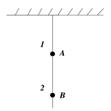 两个重力均为mg的带电球A和B,用绝缘细线1和2悬挂,如右图,已知AB间库仑力大小恰好为mg,当两球带异种电荷时,细线1和2的张力T1和T2分别为( )