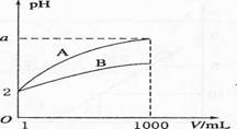 8.pH=2的A、B两种酸溶液各1 ml,分别加水稀释到1000 ml,其中pH与溶液体积V的关系如图所示,下列说法正确的是 ( )