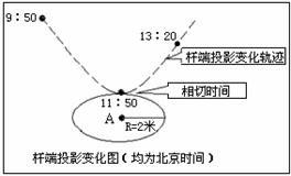 12月22日,我国某中学地理小组进行太阳高度角和当地经纬度观测,操作方法是:在操场上选择一点A 处,垂直立一个竹杆(杆长2 米),画一个半径为2米的圆圈,将观测到的杆端点在地面所投影的变化记录在操场平地上。据此回答7-8题。