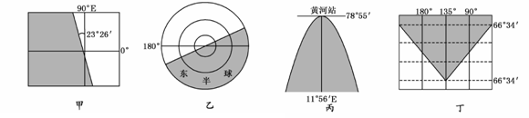 与上图对应的太阳光照图正确的是(阴影部分表示黑夜)