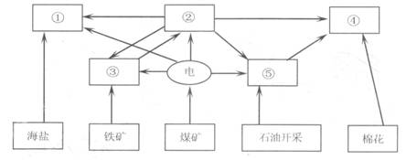 2.①②③④⑤所代表的工业部门依次是