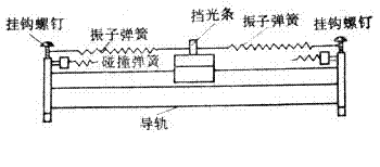 (1)在导轨两端盖上安装弹簧挂钩,并在滑行器的两端也安装弹簧挂钩,在滑行器中间位置安装挡光条,将两个弹簧如图挂在滑行器和两端盖之间。通气后滑行器将在弹簧的作用下做简谐运动。注意弹簧的长度和安装高度要合适,不要使它们收缩下垂时接触气轨表面。