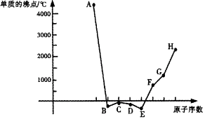 9. [09江苏模式高考化学模拟试卷(二)](8分)A、B、C、D、E、F、G、H八种短周期元素,其单质的沸点如下图所示。