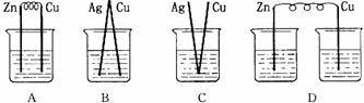 27.下列烧杯中盛放的都是稀硫酸,在铜电极上能产生大量气泡的是