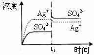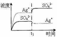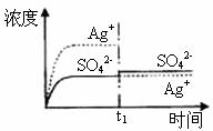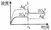 若t1时刻在上述体系中加入100 mL 0.020 mol·L-1 Na2SO4 溶液,下列示意图中,能正确表示t1时刻后Ag+和SO42-浓度随时间变化关系的是