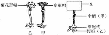 科学家对单细胞伞藻的幼体嫁接:将甲的伞柄嫁接到乙的假根上,请判断图中X“帽”为: ( )