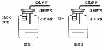 A.装置1中液滴左移 ,装置2中液滴不移动 B.装置1中液滴左移 ,装置2中液滴右移 C.装置1中液滴不动 ,装置2中液滴右移 D.装置1中液滴右移 ,装置2中液滴左移