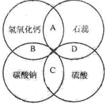 (2008·青岛)石蕊、硫酸、氢氧化钙、碳酸钠是常见的四种物质,它们的溶液之间的反应关系如右图所示。图中两圆相交部分(A、B、C、D)表示物质间反应的主要实验现象,其中描述正确的是 ( )