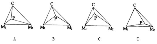 40.若在下列图示中,C为市场,M1、M2为原料供应地,假如生产1吨产品需要M1提供1.5吨原料,M2提供0.5吨原料,从节省运费的角度考虑,工厂P的布局较为合理的是
