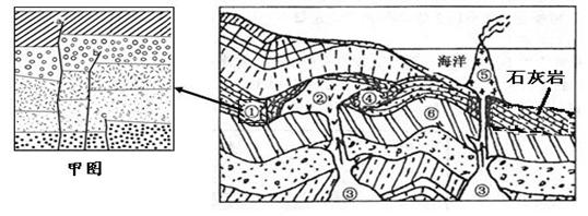 材料一: 图为地中海沿岸地质剖面图,甲图是图岩层局部放大图。