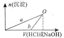 NaOH和HCl的浓度均是3 mol/L,下图是向X溶液和Y溶液中分别加入NaOH和HCl时产生沉淀的物质的量与加入盐酸和氢氧化钠溶液体积之间的关系,下列说法不正确的是