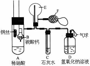 (2)将A中铜丝放入稀硝酸中,给装置A微微加热,在装置A中产生无色气体,其