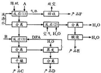 其中B是氯化物,C是不含氯的优质钾肥,D是一种氮肥,E是红色颜料;A,B,C,D均是盐类,E和F是常见的化合物。该工艺实现了原料中各主要成分的利用率均达94%以上,可望达到综合利用工业废弃物和防治环境污染的双重目的。
