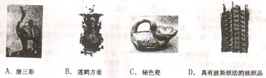 8.中国古代的手工业水平长期领先于世界,尤其在唐朝时更有其独特的一面,除了自身的发展还融入了外来风格。下列手工业品不属于唐朝的是