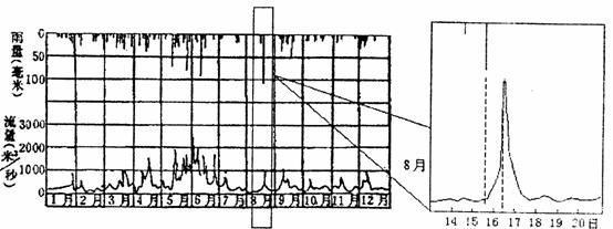 26.图中反映了该河流8月中旬的一次降水与径流的变化过程,最大降水与最大流量之间有一个时间差,近年观测发现这个时间差逐年变大,这可能是由于