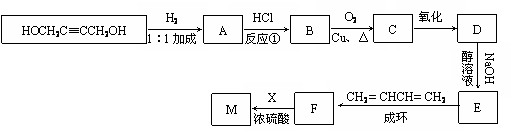 上述流程中甲醛和乙炔的反应类型是 ;X的结构简式为_____ ___。