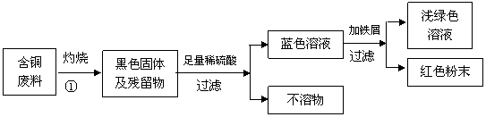 21、(5分)某工厂回收含铜废料中铜的生产流程如下: