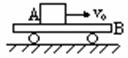 4、小平板车B静止在光滑水平面上,在其左端另有物体A以水平初速度v0向车的右端滑行,如图所示,由于A、B间存在摩擦,因而A在B上滑行后,A开始作减速运动,B作加速运动(设B车足够长),则B速度达到最大时,应出现在: ( )