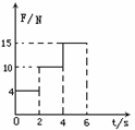 物体的质量为m=2.5 kg,静止在水平地面上。物体与地面间滑动摩擦系数μ=0.2,物体受到与地面平行的拉力F作用,F方向不变,大小随时间变化规律如图所示,那么下述判断正确的是( )