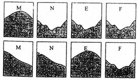12.下列图是分别过M、N、E、F四点各沿两个不同方向所作的地形剖面图,判断M、N、E、F四点所在的地形依次是( )