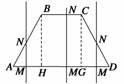 等腰梯形ABCD的两底分别为AD=2a,BC=a,∠BAD=45°,作直线MN⊥AD交AD于M,交折线ABCD于N,记AM=x,试将梯形ABCD位于直线MN左侧的面积y表示为x的函数,并写出函数的定义域.