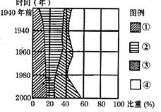 若该图表示发达国家和发展中国家城乡人口比重的变化情况,则代表发展中国家农村人口比重的是: