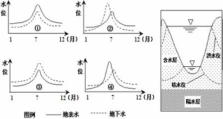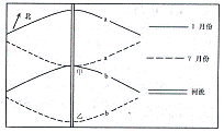 下图是我国塔里木盆地边缘某河流附近1月份和7月份潜水面等高线,等高距为1.5米。回答29-30题: