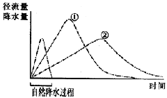 城市是人类对环境影响最深刻、最集中的区域;城市化是社会发展的必然结果,是社会进步的表现,但城市化也带来了一些问题。结合下面“城市化前后的水文过程”示意图,回答20-21题: