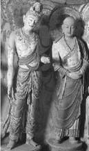 图1 云冈石窟第20窟大佛 图2 敦煌莫高窟彩塑