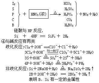 ③非金属一般为成酸元素,难以与稀酸反应,固体非金属能被氧化性酸氧化。