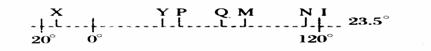 下图为世界地图上的一段纬线和三段经线,X点以西为海洋,N点以东为海洋(Ⅰ处有一岛屿),YP、QM为海洋,XY、PQ、MN为陆地。读图回答第3-4题。