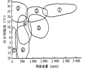 下图表示气温、降水与气候类型的关系。读图回答30题。