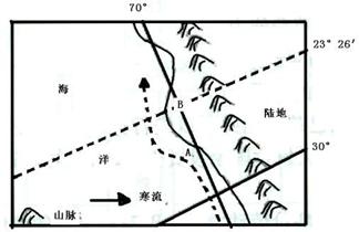 (2)若轮船沿该大洲西海岸并顺图示洋流航行,沿岸自然景观呈现 的地带性变化,B地自然景观主要是 ,其形态呈狭长的带状分布,主要原因是什么?(4分)
