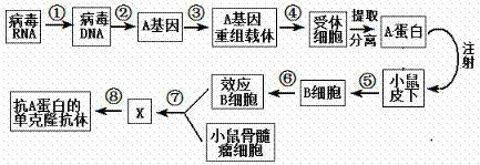 54.(9分)人类在预防与诊疗传染性疾病过程中,经常使用疫苗和抗体。已知某传染性疾病的病原体为RNA病毒,该病毒表面的A蛋白为主要抗原,且疫苗生产和抗体制备的流程之一如下图:
