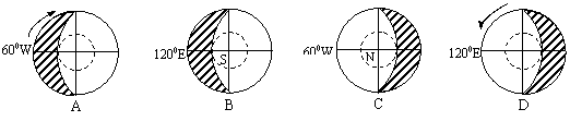 33.此时,与图所对应的太阳光照图是(阴影部分表示黑夜)( )
