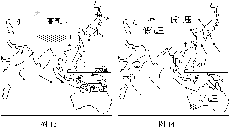 (3)据图13和图14分析,东亚季风成因是 。(1分)