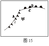 38.图15为某地近地面天气系统示意简图,读图分析回答:(7分)