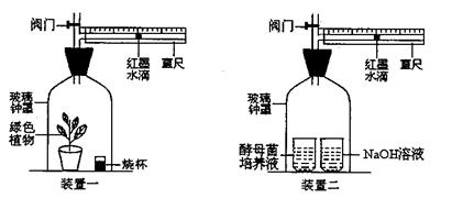 ①测定植物的呼吸作用强度:装置的烧杯中放入NaOH溶液;将玻璃钟罩遮光处理,放在适宜温度的环境中;30分钟后记录红墨水滴移动的方向和刻度。