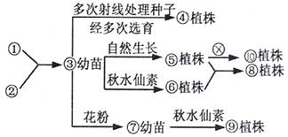 B.由⑤×⑥到⑧的育种过程中,遵循的主要原理是染色体变异