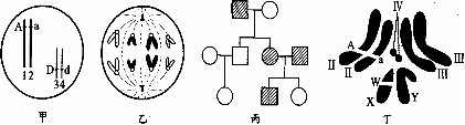 D.丁图表示雄果蝇染色体组成图,其基因型可表示为AaXwY